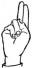 На ћирилици написано БЛАЖА ШКОБИЋ састоји се из 11 слова [?]. Исписано ћириличном једноручном азбуком за глувонеме:
